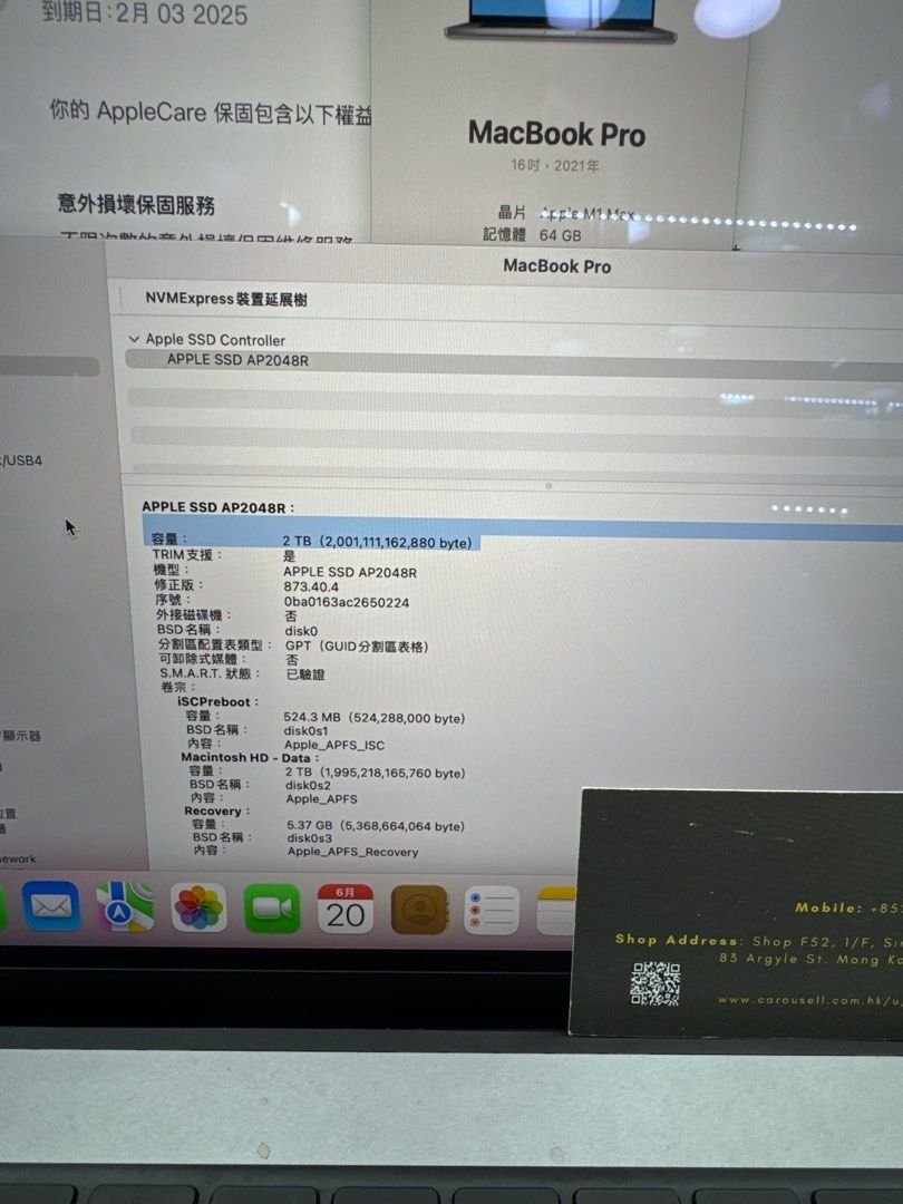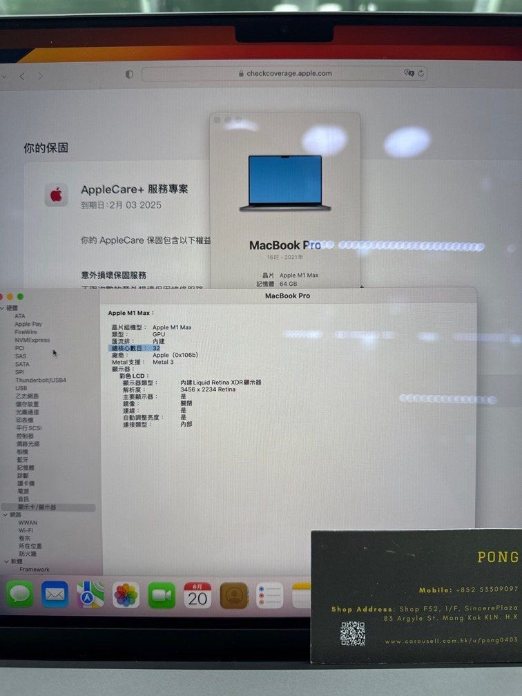 MacBook Pro M1 Max 16” Liquid Retina display XDR + Touch I.D Apple M1 Max – 10 Core CPU 64GB Ram 2TB SSD Apple M1 Max – 32 Core GPU AppleCare+ warranty to 2/2025 外殻極新,有盒,跟原廠充電器 有意可Whats App: 5116 9001/ 5330 9097 門市驗機交收 門市1地扯: 旺角先達廣場一樓F 106舖 門市1地扯: 旺角先達廣場一樓F 52舖 本店所有二手電腦均提供3個月非人為損壞保養 安心可靠 本店專營二手電腦 店內尚有大量其他型號可供選購,歡迎親臨參觀 #二手電腦 #二手macbook #二手手提電腦 #二手notebook #macbookpro13 #macbookair #2手電腦 #macbookpro14 #最新macbook #macbookpro2020 #最新macbookair #PAD #iPad #ipadmini #ipadpro #ipadair